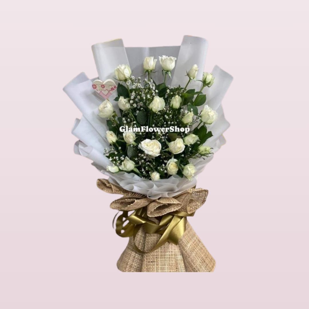 The Dose  Bouquet features stunning white roses with asther fillers -an elegant floral gift for birthdays, anniversaries, or heartfelt surprises.